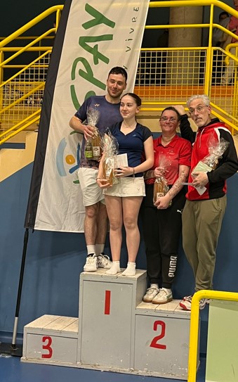 En Double Dames Série 4,niveau D8, Mylène Chaintron (la maman) et Pauline (la fille) sortent secondes de poule. Elles se rattrapent en demie et retrouvent en finale leurs adversaires de poule, C. Lacour et S. Rouillard (Alençon) contre lesquelles elles s’étaient inclinées en deux petits sets. La maman et la fille n’étaient pas prêtes à lâcher cette finale comme ça. Elles la remportent 22-20 au troisième set !!! Bravo les filles !